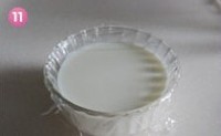 用小刀或者筷子化开一个口,口子也不要太小,太小的话再倒回去的时候容易把奶皮压在下面