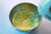 先用电动打蛋器低速打散,再转中速搅打至黄油变白,体积膨大。