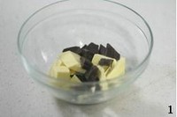 隔水加热并不断搅拌(或者用微波炉加热半分钟),直到巧克力和黄油完全溶化成液态