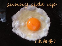 sunny side up(太阳蛋),只需单面煎,蛋黄保持流动状态