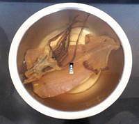 Tip:泡发焙干鱿鱼方法: 先用冷水侵泡3小时,同时将500克纯碱与10千克冷水掺合,搅成5%的纯碱溶液,再加水2~5成。 将浸泡3小时的鱿鱼捞出,放入碱水中再泡3小时,便可以胀足发好,取出放冷水中反复漂洗,除尽碱味。