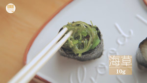 依次放入10g玉米沙拉、10g海菜、5g肉松。