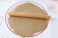 松弛好的面团放桌上擀成厚约0.3厘米的薄面片
