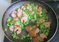 虾仁翻炒变色后加入焯过水的蚕豆米一起翻炒