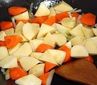 炒锅中倒入油,待油温略高后下入洋葱翻炒。