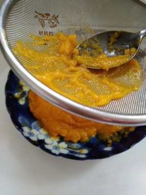 蒸熟的南瓜压成泥.过筛。