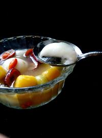 可以添加西米,红枣,枸杞,酒酿,红糖,姜片,汤圆等一起哦?。看,多么诱人的一碗芋圆甜汤啊!