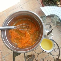 Tip:红萝卜磨成泥时,带有水份,所以在加入油还有水后,筛入低筋面粉搅拌均匀时发现面糊没有成为粘稠的蛋黄糊时,可以适当增加少量低筋面粉。