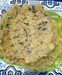 将鸡蛋打入碗中,打散;将黑木耳,秋葵切碎一起放入碗中,放入地瓜粉,放入一点点面粉,加适量盐,加适量水,打均匀。平底锅少许油,将面糊倒入中央,往两边慢慢抹开,一定要小火。