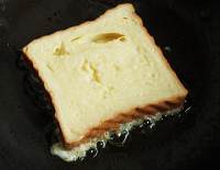 吐司泡在蛋奶液里,翻面,轻压一下,让它吸满汁水。(两面浸透)