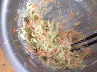 将圆白菜切丝、胡萝卜插丝