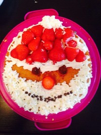 感觉融化巧克力麻烦的,可以找个替换方法: 眼镜是樱桃对半切,然后裹上可可粉; 嘴巴就是巧克力颗粒