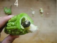 Tip:1、选苦瓜的时候要选大,选肥一些的苦瓜。 2、苦瓜用热水焯一下会变软,塞香蕉的时候很容易就塞进去了。 3、香蕉剥开三分之一处,这样会避免往苦瓜里塞得时候折了。