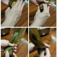 接下来是包粽子的技术活儿啦!最好在网上找视频学习,我也是看视频学会的。不过我总结了一下,粽子叶要这样摆比较好包。