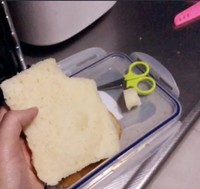 准备工作: 工具:小剪刀,水果刀 构思好长颈鹿和餐盘的构图,可以先在纸上画出效果图,根据画出的图,剪出想要的形状。 开始制作: 去除吐司的四边,取出中间部分
