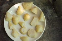小碗里装上面粉,在粽子上沾一些薄薄的面粉。