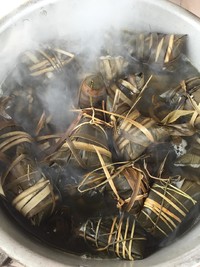 锅里煮水开了再放入粽子,中火煲3小时左右,到时可以打开一条看看好了没有再捞出