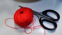 (6)再准备好剪刀和线,包粽子的准备工作就绪了。 这个线很细,你能弄到粗的或棕树叶更好。