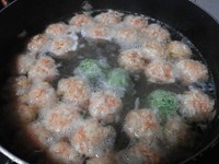 锅内加水烧微热转小火,使用半圆形调羹取适量馅料入水中,或其它方法将肉馅团成球状即可