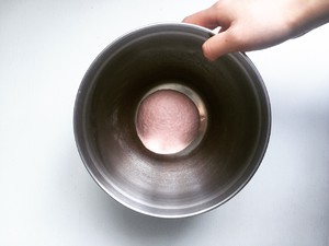 将本种面团用后油法搅拌至完全阶段,加入葡萄干搅拌均匀,滚圆二发至两倍大小。 面团含水量比较大,用手揉面的同学,可以预留一部分水慢慢加,千万不要轻易放弃,揉好的面团手感真的超级棒!看图就能知道,水水嫩嫩的,哈哈