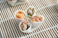香菇用冷水浸泡15分钟,切碎末。胡萝卜芹菜也分别切碎末。将猪肉馅儿分三份分别加入芹菜,胡萝卜,香菇碎里,加入调料用筷子从一个方向搅拌均匀