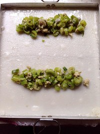 200克温水40度左右,150克米粉,另加3克盐搅拌㓎泡一个小时,做馅去。