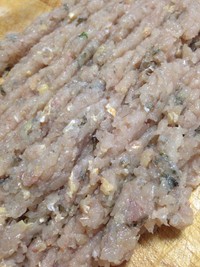 鱼茸里放入韭菜、盐、鸡精、胡椒粉、油(油要多方,可以去腥)喜欢姜的可以放姜 我是不喜欢 没放 搅拌好