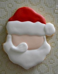 (一)圣诞老人: 1、用白色糖霜画出圣诞老人的帽檐,晾干;