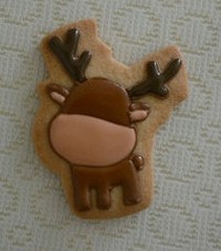5、用红色糖霜画出小鹿鼻子,趁未干用白色糖霜画出高光;