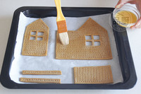 等粘主房的蛋白霜干了粘牢了,再把前面两片偏房面片粘上待干