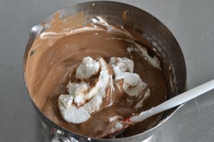 温度65-70℃左右,倒入混合筛好的蛋糕粉中,混匀,烫面完成