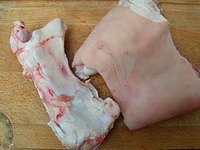 肉皮片掉内侧的脂肪,刮干净并用清水冲洗。