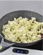 放入菜花,大火炒至菜花变软,约3,4分钟左右,