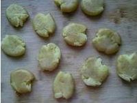 待蒜碎呈金黄色时倒入小土豆小心翻炒几下