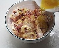 将切块的鸡加入盐,鸡蛋1/4颗少许腌制30分钟
