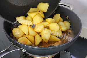 然后加入土豆块,继续炖煮5分钟。