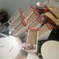 如果一次性做多可,可以买包装袋来包住放入冰箱哦,没包装袋也要覆上保鲜膜再放入冰箱,不然很容易吐司就干掉了。如果平时想做下午茶可以再切一刀,用牙签固定,就有4小块啦。