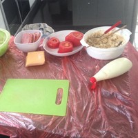 准备材料:吐司不用烤,不要切边,先放一边待用。西红柿和黄瓜切片,放一边待用(喜欢甜的朋友可以加入一点糖稍微腌制一下)。