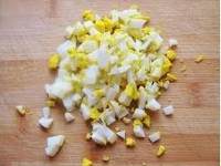 将胡萝卜,鸡蛋,青豆粒一起,加入沙拉酱