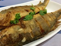 锅烧热加油,将鱼煎制两面金黄色,鱼比较大所以多煎一会