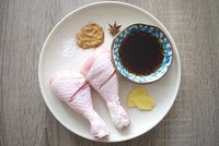 锅内加油和姜片,入鸡腿稍微煎一下两面,加入料酒,糖,八角,盐,酱油和水(没过鸡腿),收干即可