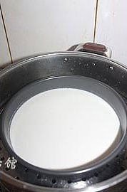 将糯米糊倒入一个大盘子中,再放入蒸锅中大火蒸15分钟(根据量的多少在适当的增加时间,用敞口的大盘子蒸熟的快)