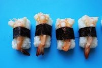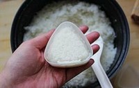 大米里掺入少许糯米,清水浸泡1个小时,放电饭煲里焖熟,焖熟后用铲子将米粒打松,趁热将自制寿司醋倒入大米中拌匀(白醋和糖按1:1混合)