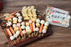 把桂冠的各种丸子用竹签串起来,可以随意搭配品种,也可以不串直接下锅煮。但刚好煮汤底的时候比较闲,所以我就串了一下,吃的时候更方便。