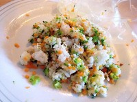剩下的2/3蔬菜里加入热腾腾的白米饭(大概是宝宝一餐的份量即可)