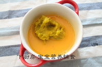 加入了泡好的奶粉。南瓜泥:鸡蛋液:泡好的奶粉的比例为1:2:2。