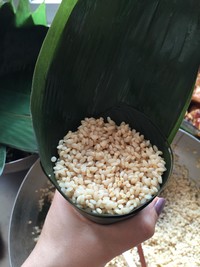 装满糯米用勺子压实
