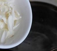 锅中坐水烧开,下入百合焯水,至开锅即可