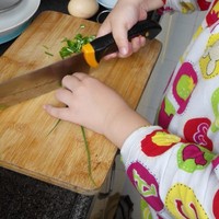 等待间隙,可以准备一下其它食材。(小盆友动作慢一些,所以不能一次性一下子就把火腿肠切好,蛋打好,黄瓜切丁,只好分开来做啦!)