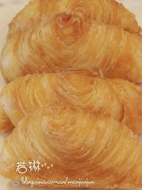 油皮擀成圆形包如油心,收口捏紧,收口朝上压扁